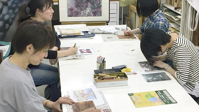 銅版画は木版画とは違うところも多いですが、先生が分かりやすく教えつつサポートしてくれるため、小さな作品から自分の背丈ほどの大きな作品まで自由に作ることが出来ます。私も少しずつですが、上達してきたように思います。