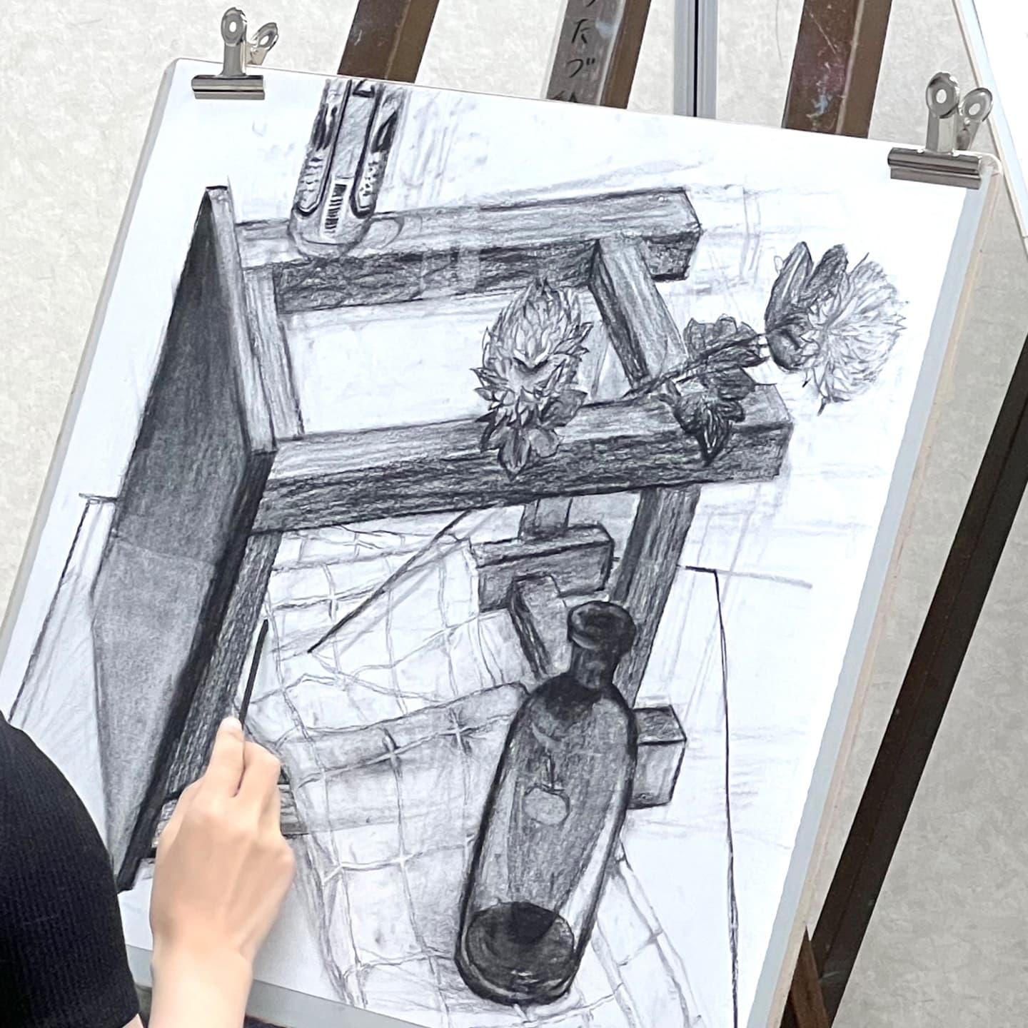 少人数なので、自信のない方でも丁寧に教えてもらえて満足できると思います。私は静物デッサン、木炭デッサンと基礎からしっかり教わりました。いろいろとやってみる中で油絵が向いてると言っていただいたので今は油絵を描いてます。